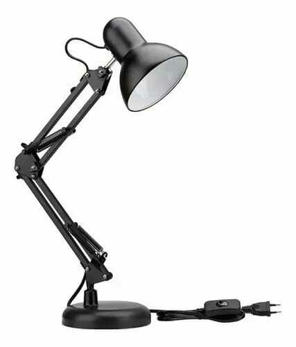 lámpara de escritorio flexible, también conocida como lámpara tipo Pixar. Estas lámparas se caracterizan por su brazo articulado que permite ajustar la dirección de la luz.