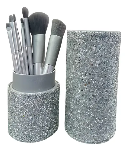 7 BROCHAS PLATEADAS + TUBO DE GLITTER PLATEADO